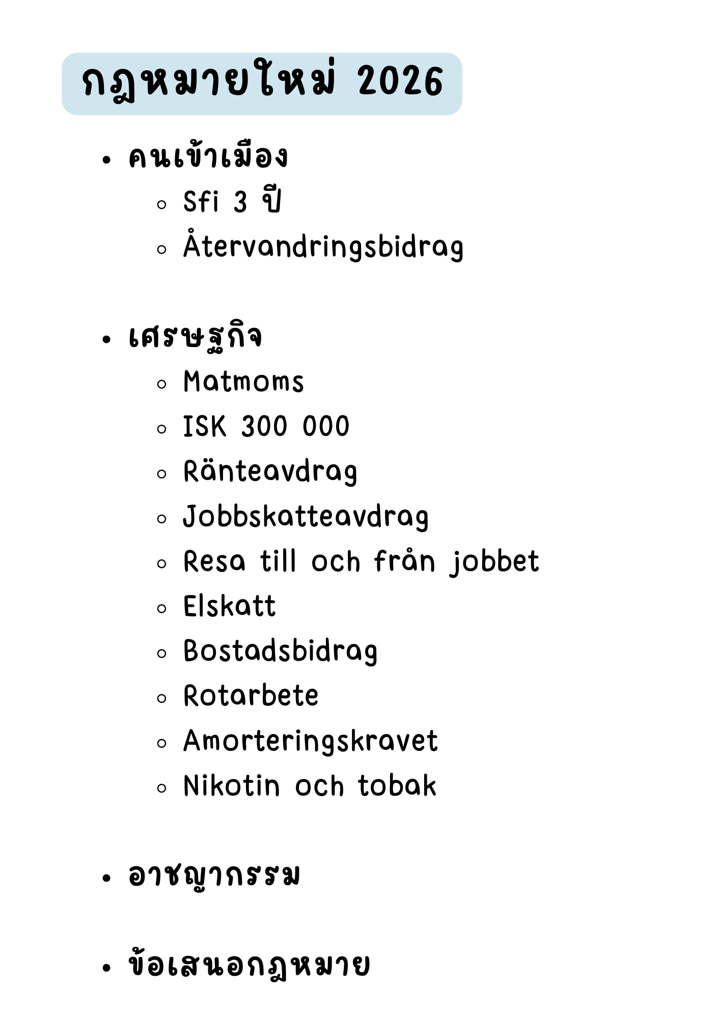 กฎหมายใหม่ในสวีเดน ต้นปี 2026